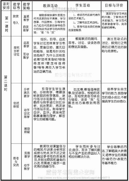本课教学先从古代大家乐此不疲、勤学不断、苦练有成的故事和《西园雅集图》的“雅集”故事导入,让学生明白“一艺之成必智行两尽”,且须持之以恒。用书法艺术的功用与特有的艺术魅力感染学生,让学生充分感受书艺之美,激发学生对本课程的学习积极性,继而指明学习书法必须遵循的路径、方法与步骤。帮助学生养成眼到、手到、心到以及反思学习的习惯,做到眼察其貌、心究其理、手追其形,明白学以致用的道理以及与读、临、校、记、默、用的关系。培养学生发现问题和解决问题的能力,使学生养成细心、耐心和持之以恒的良好学习品质,掌握科学的学习方法。