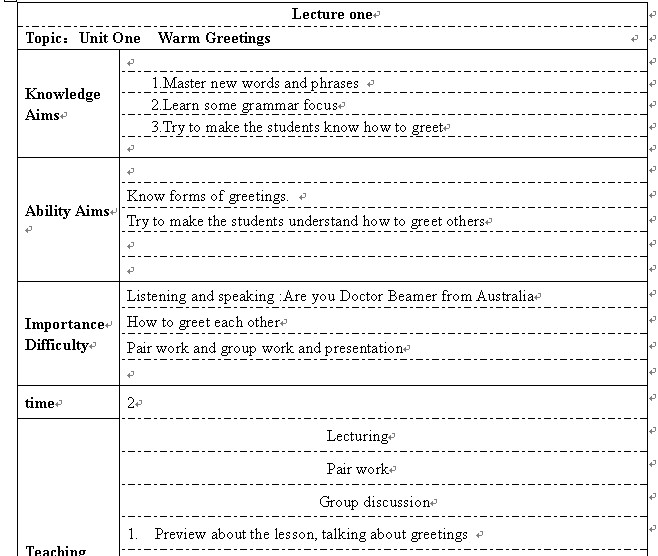 课程名称 高职英语1 授课专业 高职