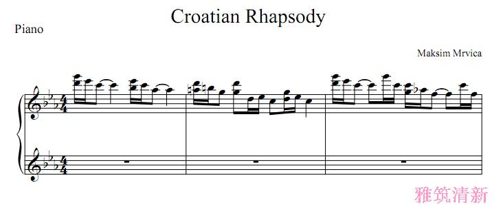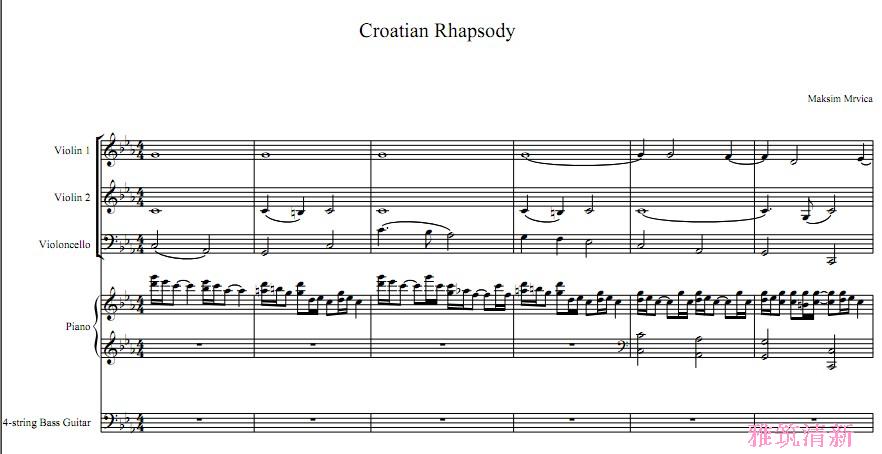 Maksim克罗地亚狂想曲Croatian Rhapsody 钢琴谱 小提琴谱 总谱 五线谱,PDF格式,可打印,可在IPAD中阅读。 此谱使用软件打谱,高清晰度,非图片版或扫描版。 优点:1.翻书练习总有些不方便,把乐谱打印在纸上,练哪页打印哪页是不是会很方便呢? 2.电子时代IPAD盛行,把乐谱放在IPAD中是当下最新选择。