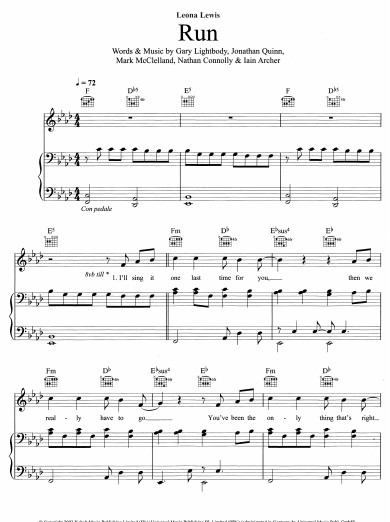 Leona Lewis Run Words & Music by Gary Lightbody, Jonathan Quinn, Mark McClelland, Nathan Connolly & lain Archer