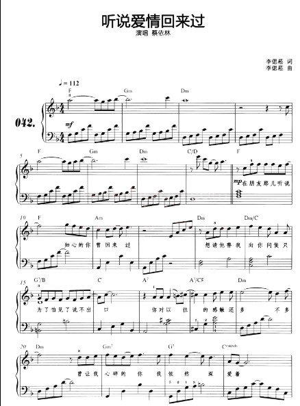 听说爱情回来过钢琴谱