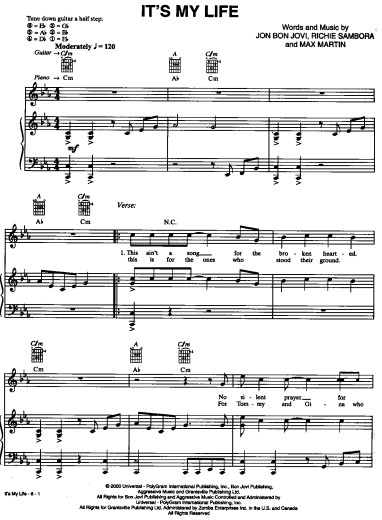 Jon Bon Jovi — It`s My Life钢琴谱
