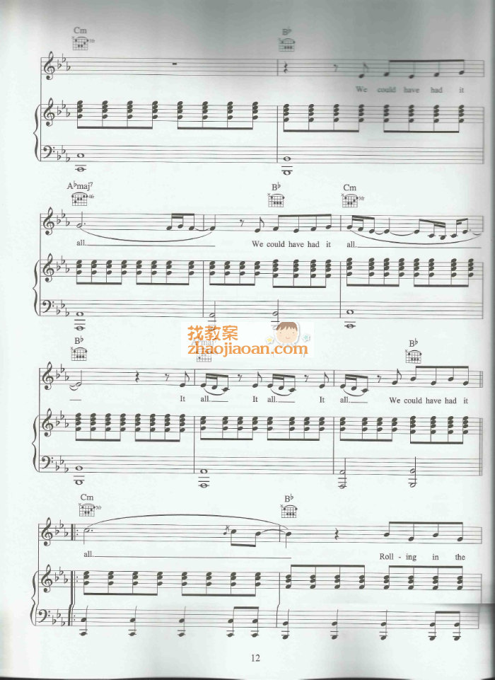 adele阿黛尔 rolling in the deep 钢琴谱 五线谱