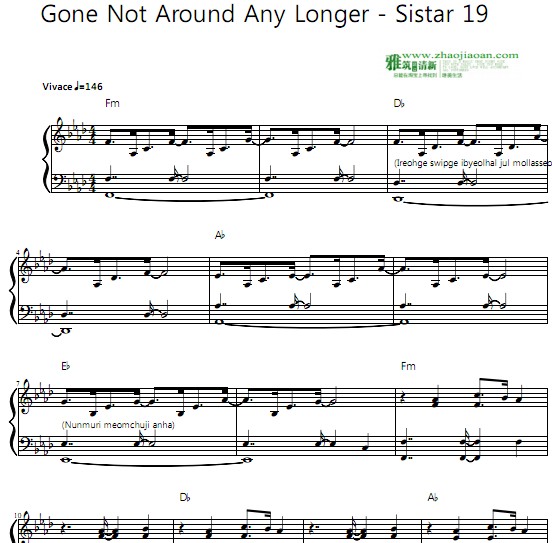 Sistar19 - Gone Not Around Any Longer钢琴谱
