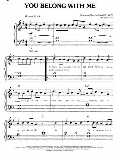 Taylor Swift - You Belong With me Piano Sheet Music