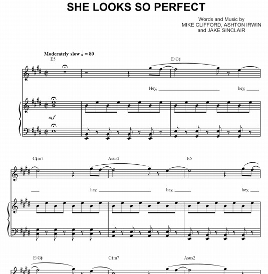 5 Seconds of Summer - She Looks So Perfect钢琴谱 伴奏谱