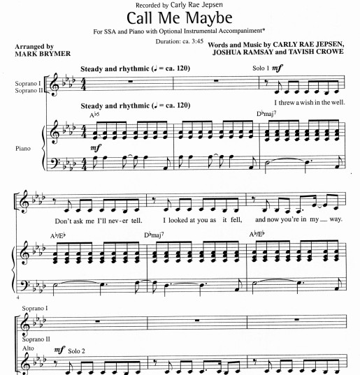Carly Rae Jepsen - Call Me Maybe 钢琴谱 SAA伴奏谱