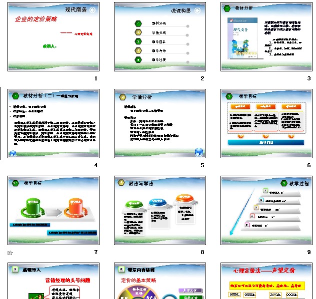 企业的定价策略是该教材中第二章的内容,本章将重点介绍产品定价目标和定价程序、企业的定价方法、企业的定价策略以及价格调整策略。企业的定价策略是本章第三节的内容,学生是在掌握定价目标、定价程序、企业的定价方法的基础上进行学习。本节课重点掌握企业定价策略中的心理定价策略,该内容为能准确把握商品在市场上的定价情况提供了有效的理论基础。