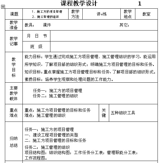 项目一 施工管理1.1、1.2