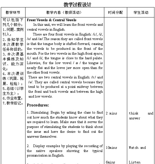 Pronunciation (1) Front vowels and Central vowels