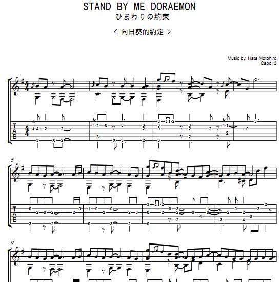 哆啦A梦:伴我同行 向日葵的约定吉他谱