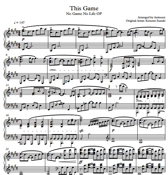 NO GAME NO LIFE游戏人生This Game 钢琴谱