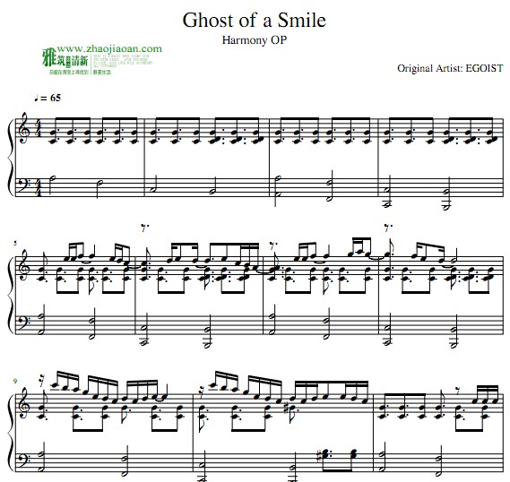 和谐 Harmony OP Ghost of a smile 钢琴谱
