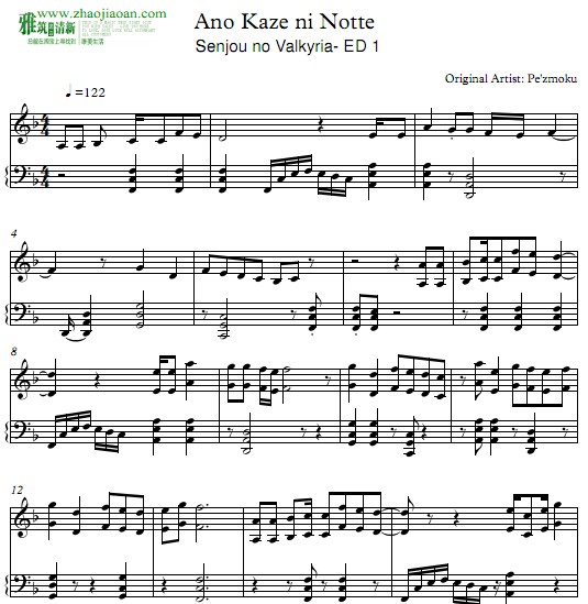 战场女武神ED1 Ano Kaze ni Notte钢琴谱