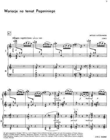卢托斯拉夫斯基《帕格尼尼主题变奏曲》双钢琴 原版钢琴谱
