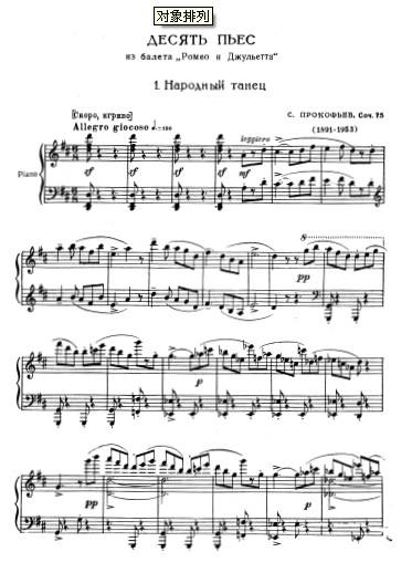 钢琴组曲《罗密欧与朱丽叶》Romeo and Juliet Op.75共由十首作品组成,它们分别是: