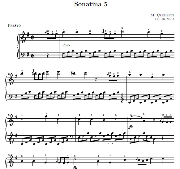Sonatina in G, op.36 no.5 G大调 1. Presto 2. Swiss Air: Allegro moderato 3. Rondo: Allegro di molto