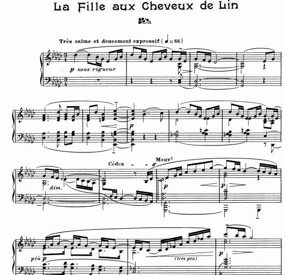 原版德彪西棕发少女钢琴谱