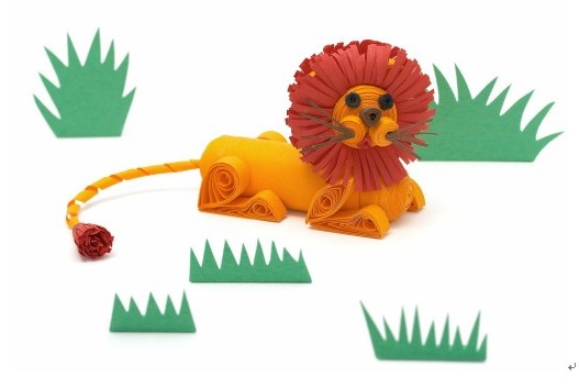 40.这样,一个有趣的衍纸狮子就制作完成了,不知道你是不是已经掌握了所有基本的衍纸方法啦。再来一个平面的衍纸教程吧: