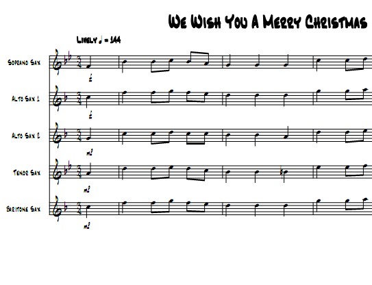 圣诞歌曲We Wish You A Merry Christmas萨克斯五重奏谱