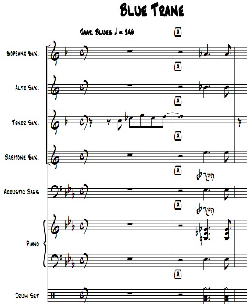 Blure Trane萨克斯四重奏钢琴伴奏总谱+分谱